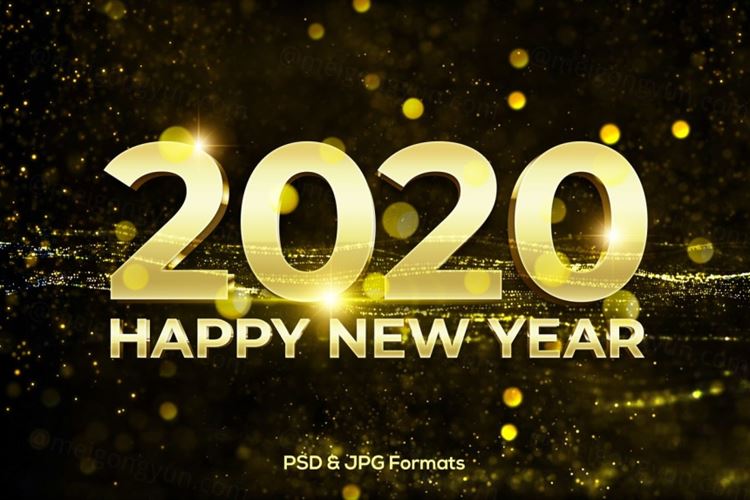 图穷联素材库 » 震撼的3D立体土豪金色2020年新年元旦banner海报主标题设计模板