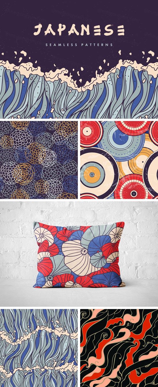 图穷联素材库 » 还原古老色彩的日式无缝拼接图案EPS矢量素材 Japanese Patterns