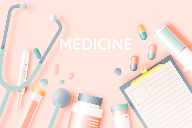 图穷联素材库 » 清新的粉色关注健康医疗用品矢量插画