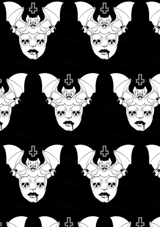 图穷联素材库 » 一组经验的死亡蝙蝠魔女矢量图案