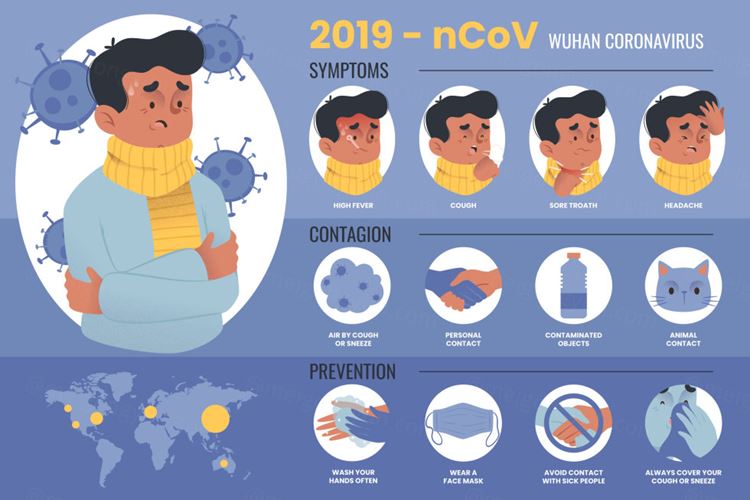 2019 nCov 武汉新型冠状病毒传播方式和预防措施矢量插画素材免费下载