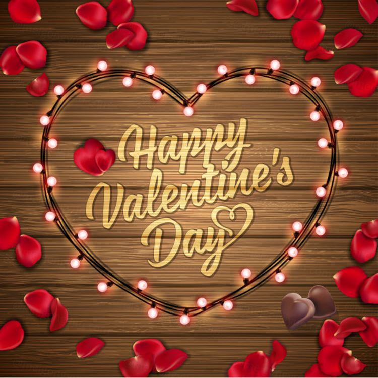 情人节彩灯爱心花瓣装饰场景
