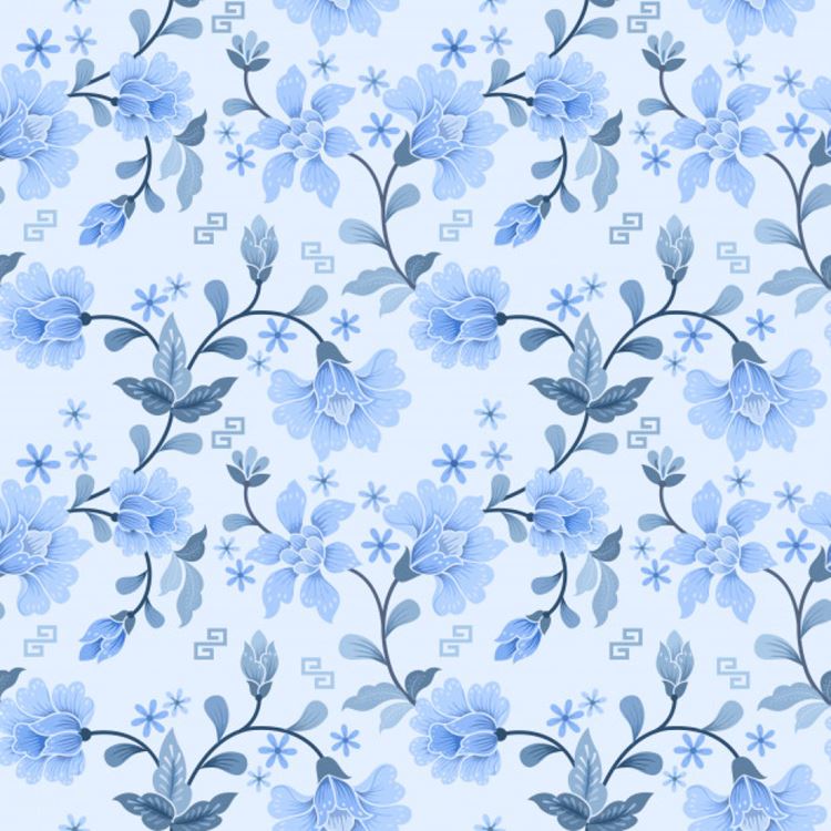 图穷联素材库 » 优质矢量蓝色花卉无缝图案插画背景
