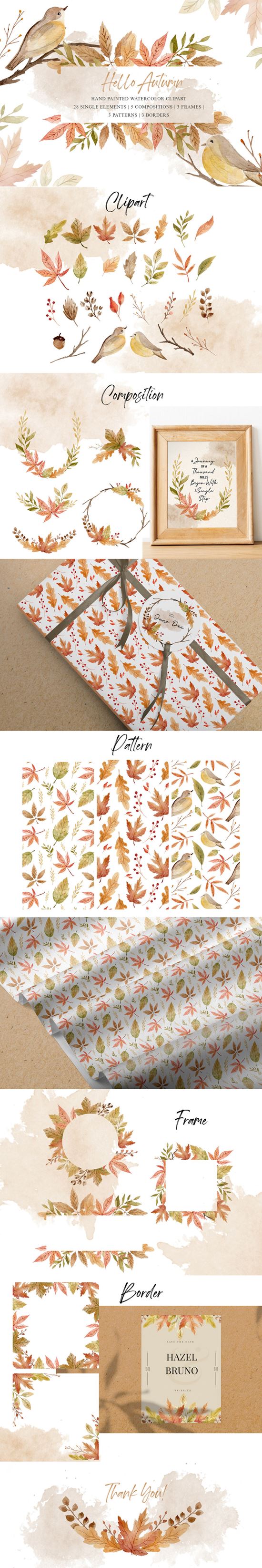 图穷联素材库 » 令人惊叹的秋季系列手绘水彩画集 Autumn Watercolor Cliparts