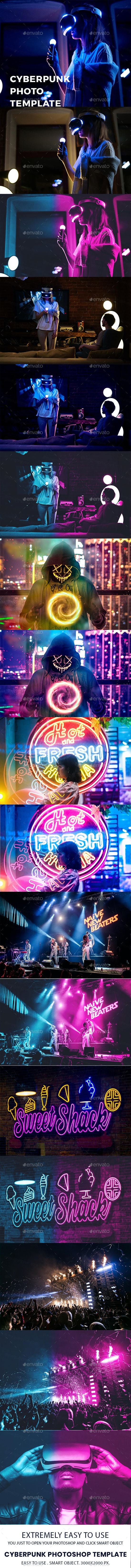 电影级抽象赛博朋克创意效果PS素材 Cyberpunk Photoshop Template V2