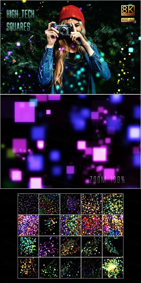 图穷联素材库 » 20张高科技酷炫光效效果叠加层PS素材 8K High-Tech Squares Overlays 2487688