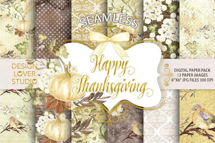 图穷联素材库 » 感恩节快乐主题水彩图案设计素材 “Happy Thanksgiving 2” digital papers