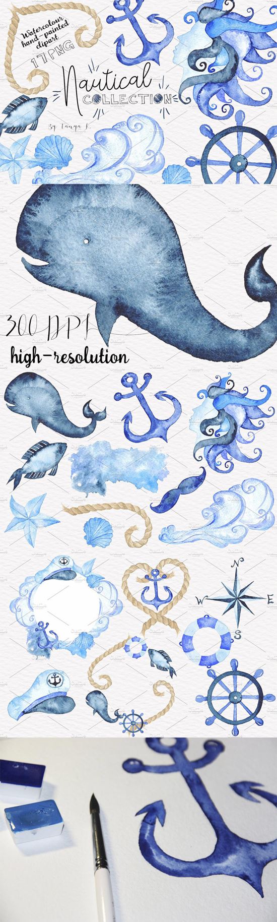 海洋元素的水彩肌理元素[PNG,PSD]