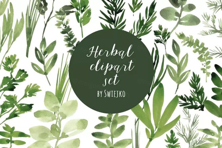 图穷联素材库 » 水彩草本植物插画素材 Watercolor Herbs set