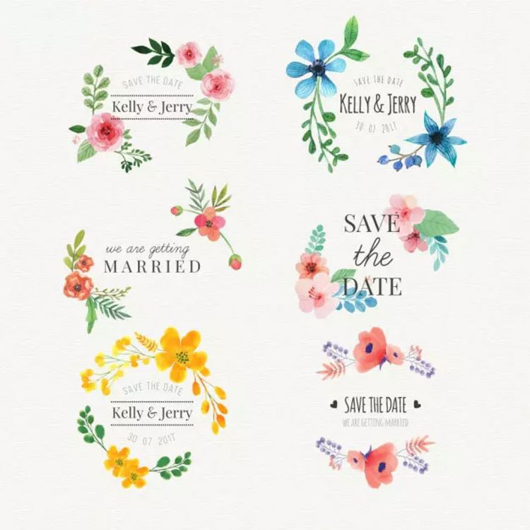 6个水彩婚礼标签 Floral watercolor wedding stickers set