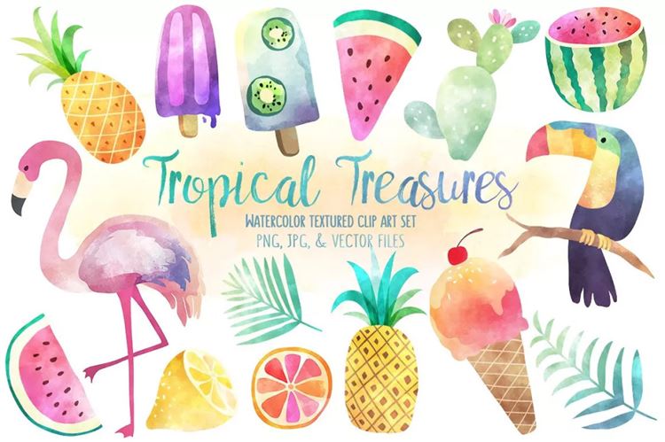 图穷联素材库 » 热带珍宝水彩素材 Tropical Treasures Watercolor Bundle