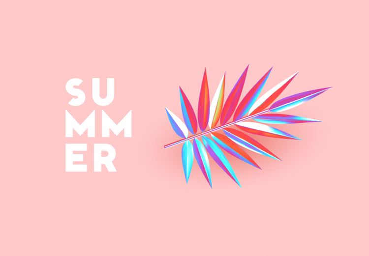 图穷联素材库 » 渐变色荧光棕榈叶树枝3D海报素材 Background palm leaves branches of gradient color