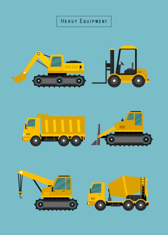 图穷联素材库 » 挖掘机叉车重型卡车日常交通工具矢量插画集