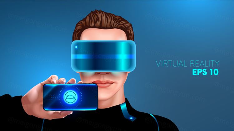 图穷联素材库 » 穿网络安全服的年轻男人戴着AR眼镜手持手机EPS概念插画素材