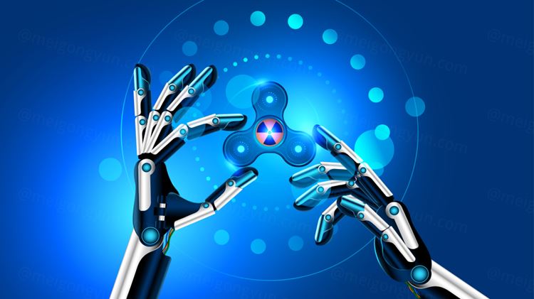 图穷联素材库 » 机器人手持旋转减压玩具未来蓝色背景概念插画素材