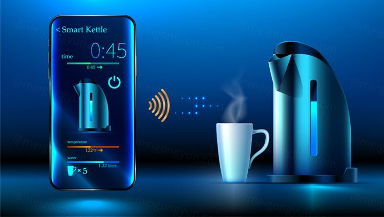 图穷联素材库 » 智能手机控制热水壶家居Wi-Fi无线控制IOT物联网家庭智能设备概念宣传矢量插画素材