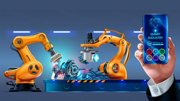 图穷联素材库 » 机器人机械手臂智能管理APP智能手机设备远程控制概念插画素材