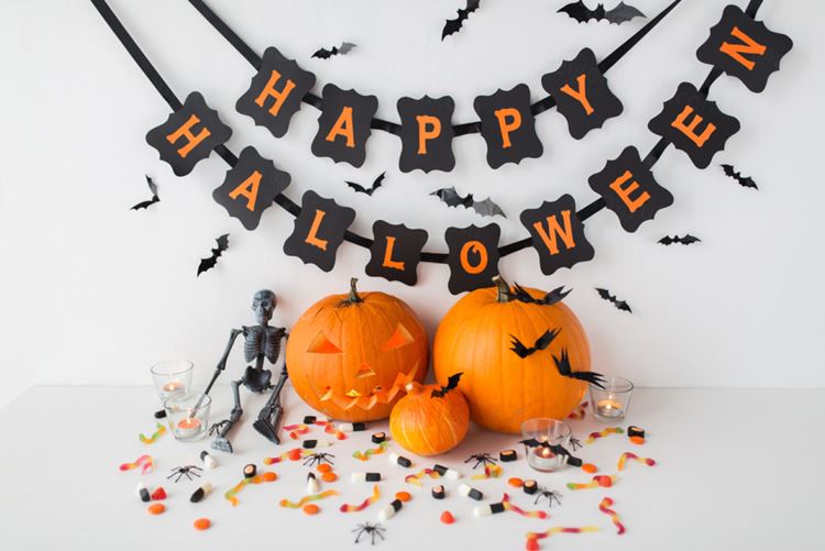 图穷联素材库 » 万圣节南瓜骷髅糖果场景欧美简约高清背景素材