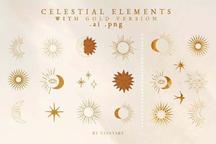 图穷联素材库 » 金色质感的太阳阳光元素抽象矢量插画集合