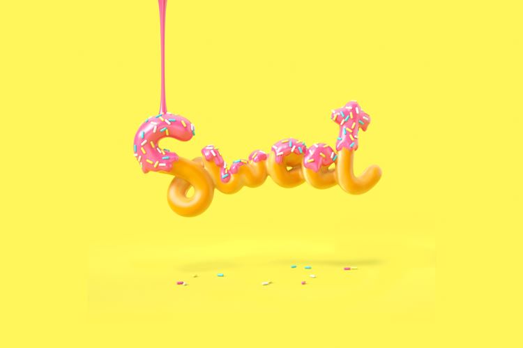 图穷联素材库 » 甜蜜浪漫的情人节三维3D立体甜甜圈卡通文字特效PSD模板