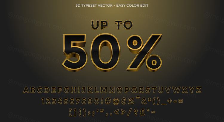 图穷联素材库 » 黑金三维立体金属字体特效文本可编辑PSD样机模板素材 3d editable text effect