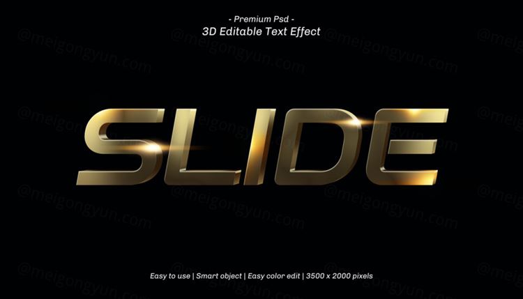 图穷联素材库 » 三维黄金立体字体特效文本可编辑PSD样机模板素材 3d editable text effect