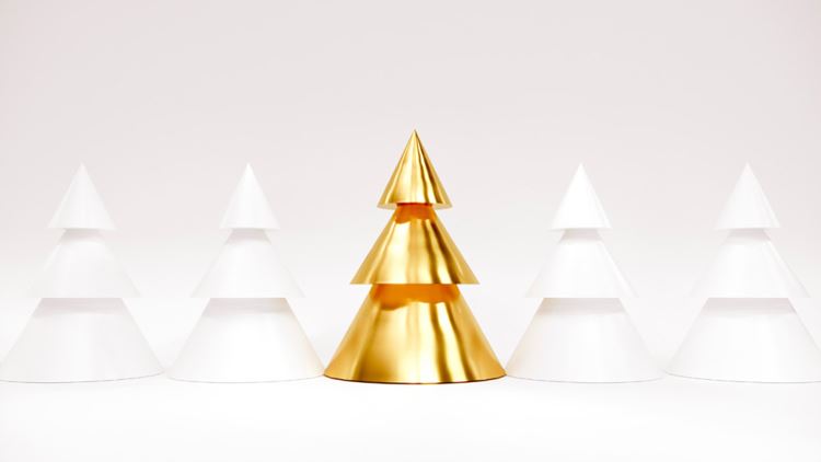 图穷联素材库 » 金色白色圣诞树新年圣诞节装饰元素3D渲染合成高清背景 3d rendering of a christmas