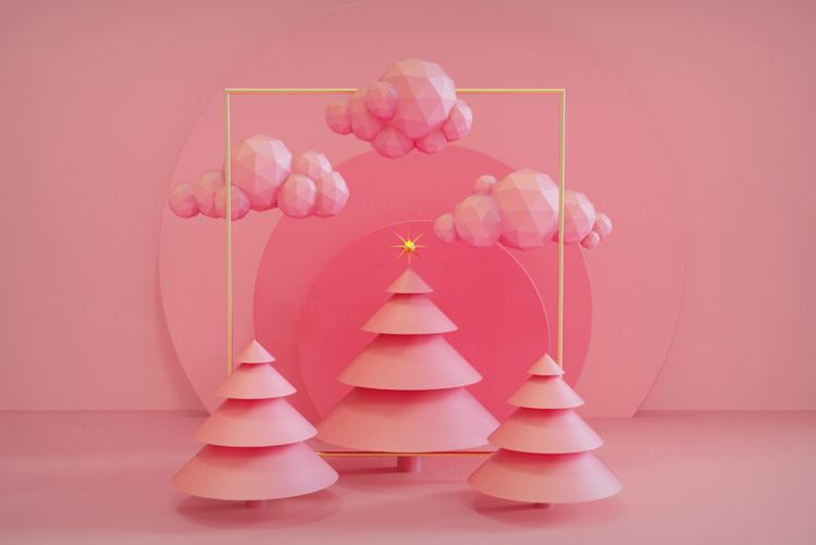 可爱卡通圣诞树新年圣诞节装饰元素3D渲染合成高清背景 3d rendering of a christmas