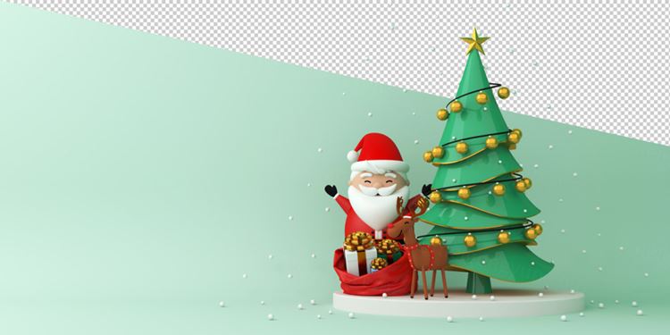 图穷联素材库 » 圣诞节3D渲染卡通可爱新年快乐场景PSD分层插画素材 Merry christmas happy new year
