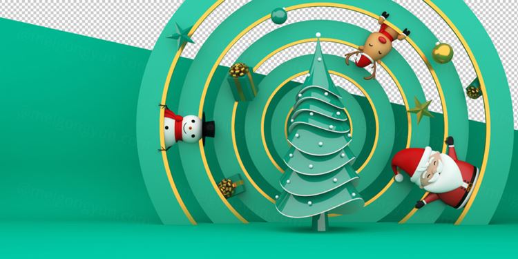 图穷联素材库 » 圣诞节3D渲染卡通可爱新年快乐场景PSD分层插画素材 Merry christmas happy new year