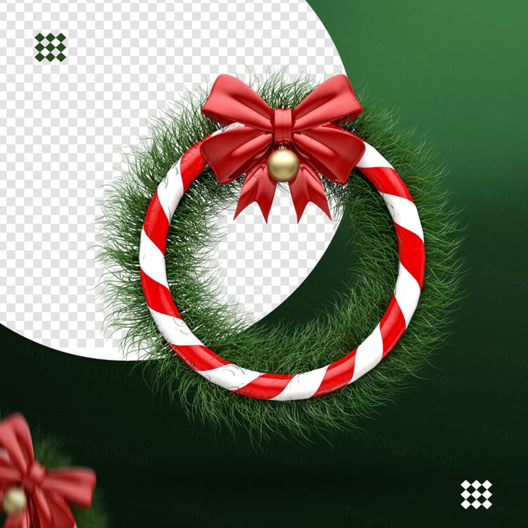 图穷联素材库 » 花环圣诞球三维立体图标素材 3d wreath with bow and christmas ball