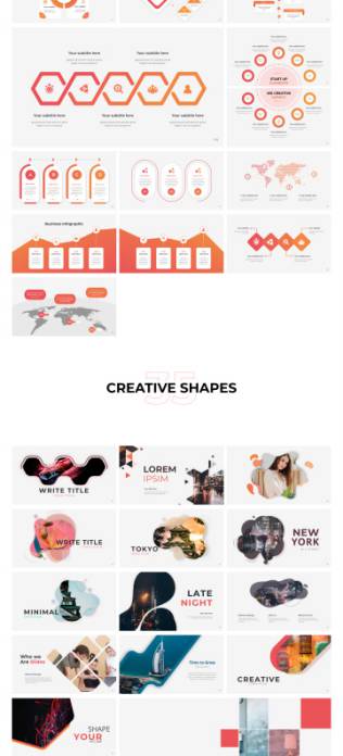 这是!独特的形状和图表。购买-拖放-演示文稿已完成