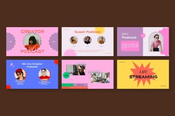 图穷联素材库 » 超现代主播时尚博主自媒体营销幻灯片演示ppt模板素材 Podcast Powerpoint Template