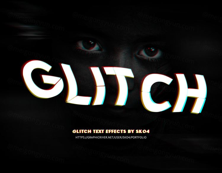 图穷联素材库 » 老式复古朋克RGB故障信号错位文字特效风格PSD模板 Glitch Effects