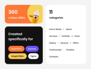 你好呀!今天我要介绍我的新作品。这是一个巨大的幻灯片包,可帮助您使用专为 PowerPoint、Keynote、Google 幻灯片和 Figma 制作的 360 度干净且令人愉悦的幻灯片更快地创建下一个演示文稿。非常适合简历、作品集、包装箱、商业物品、介绍项目等。自定义所有内容,让您的演示文稿独一无二且令人难忘。