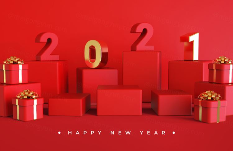 图穷联素材库 » 2021新年快乐元旦红色促销金色3D渲染合成场景海报素材 Happy new year 2021