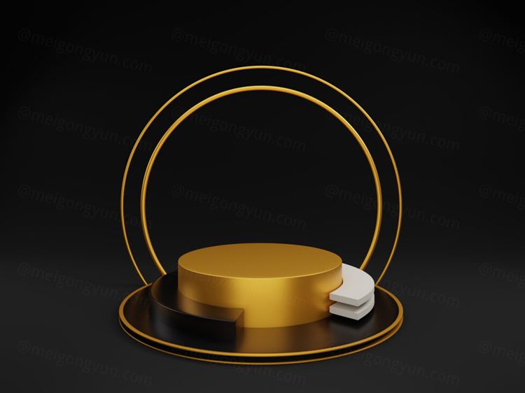 图穷联素材库 » 三维渲染黄金金属几何产品台子舞台抽象背景素材