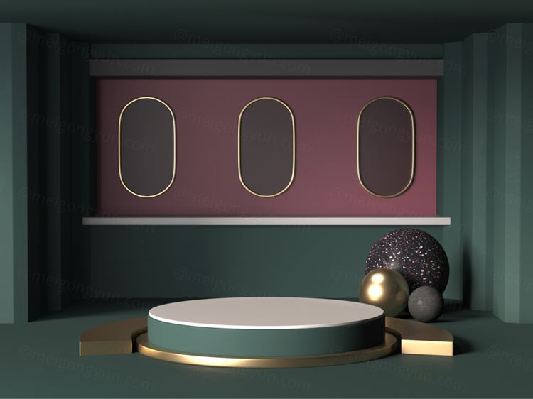 图穷联素材库 » 3D渲染室内房间金属几何产品台子舞台抽象背景素材