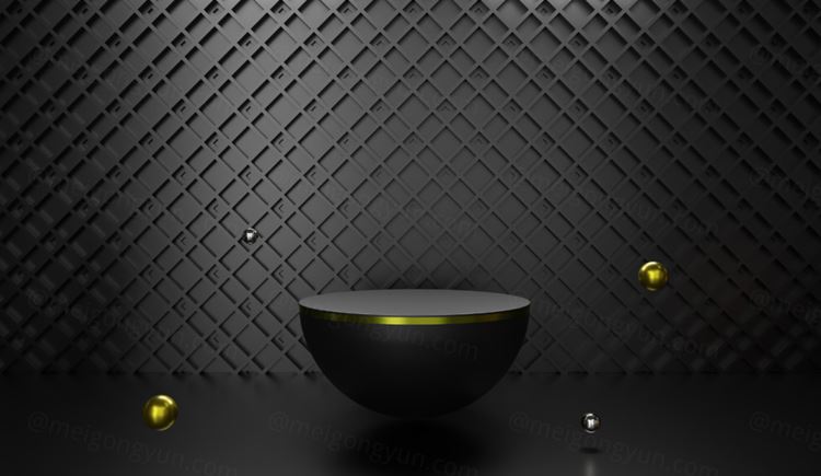 图穷联素材库 » 3D渲染抽象黑色背景金属几何产品台子舞台抽象背景素材