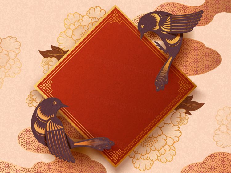 图穷联素材库 » 剪纸风农历年传统空白春联与燕子金色背景中国风元素新年传统横幅矢量背景素材
