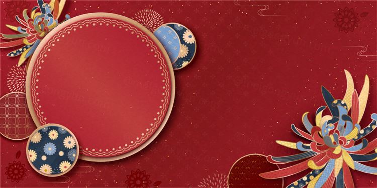 图穷联素材库 » 农历新年贺卡横幅与菊花和红色背景上的传统图案中国风元素新年传统横幅矢量背景素材