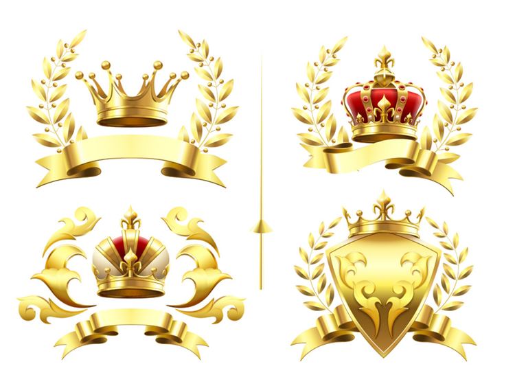 图穷联素材库 » 金色皇家王冠桂枝皇冠矢量图标插图元素装饰EPS矢量素材 Golden royal
