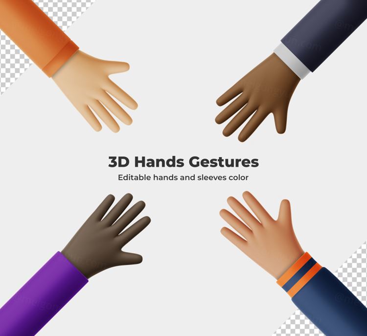 图穷联素材库 » 卡通三维立体手势设计装饰素材 3d cartoon hand gesture rendering