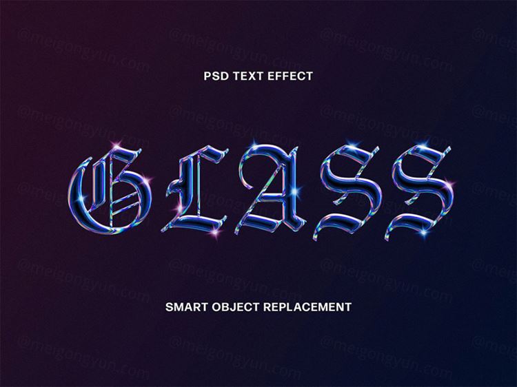 图穷联素材库 » 高质量全息镀铬镭射反射彩色弯曲玻璃文字特效PSD模板 Holographic Glass Text Effect