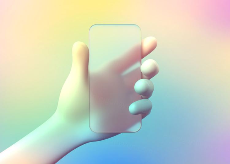 图穷联素材库 » 最新潮流C4D渲染模糊毛玻璃艺术效果卡通手持透明手机 Glass Morphism Background
