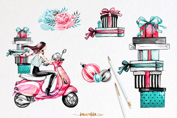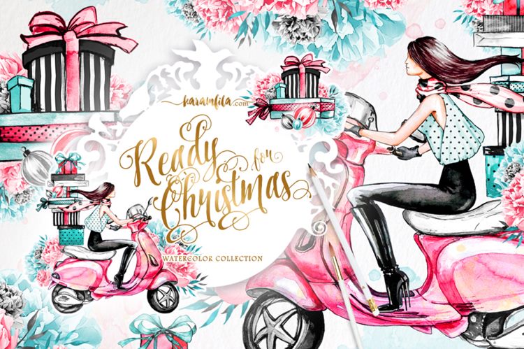 图穷联素材库 » 水彩效果花朵设计素材Ready For Christmas