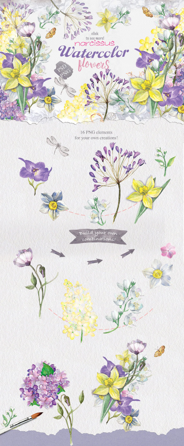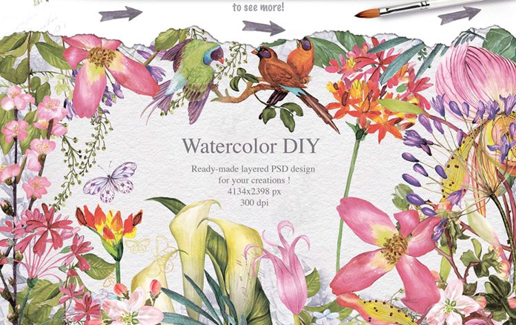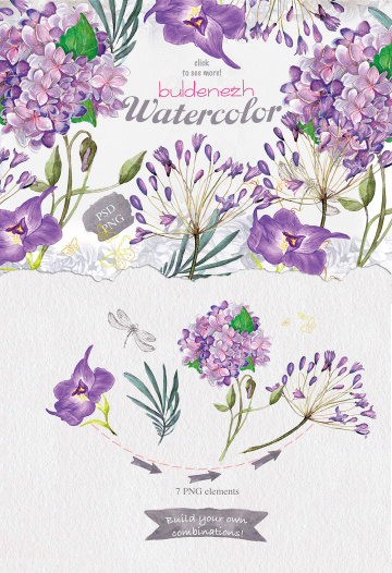 我很高兴向你介绍这个艺术品收藏!!透明PNG和分层Psd上有超过70个带有水彩花卉元素的PNG和6个Psd文件!
