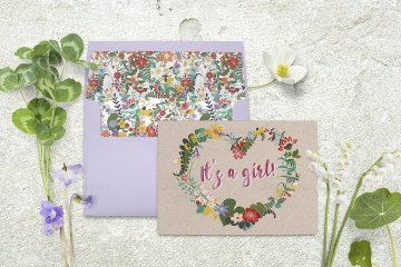 1 张带 A7 横向卡片和打开的方形信封,带可拆卸衬里和方形信封背面,可编辑后盖