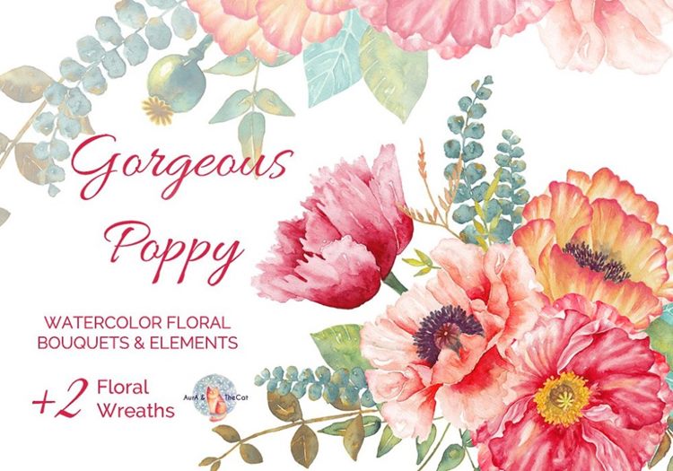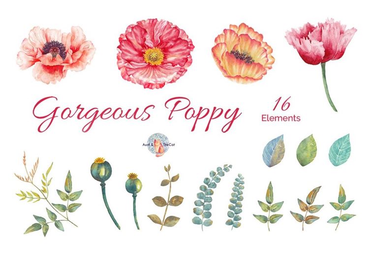 图穷联素材库 » 手绘水彩花卉设计素材Gorgeous Poppy Water