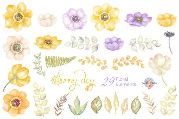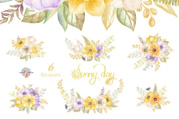 手绘水彩花卉设计素材Sunny Day Watercolor